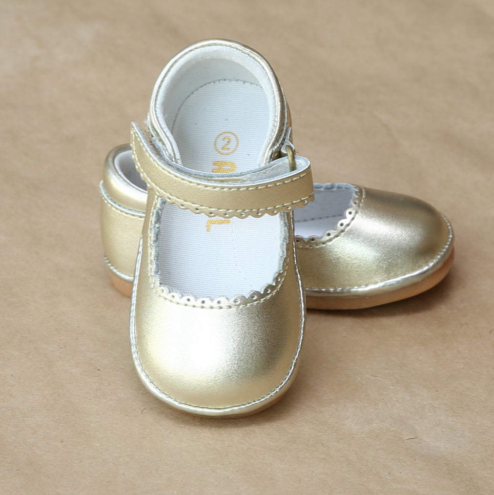 Classic mary jane with scalloped trim at the topline and strap that makes this style unique and stylish. Infant sizes 1-7.