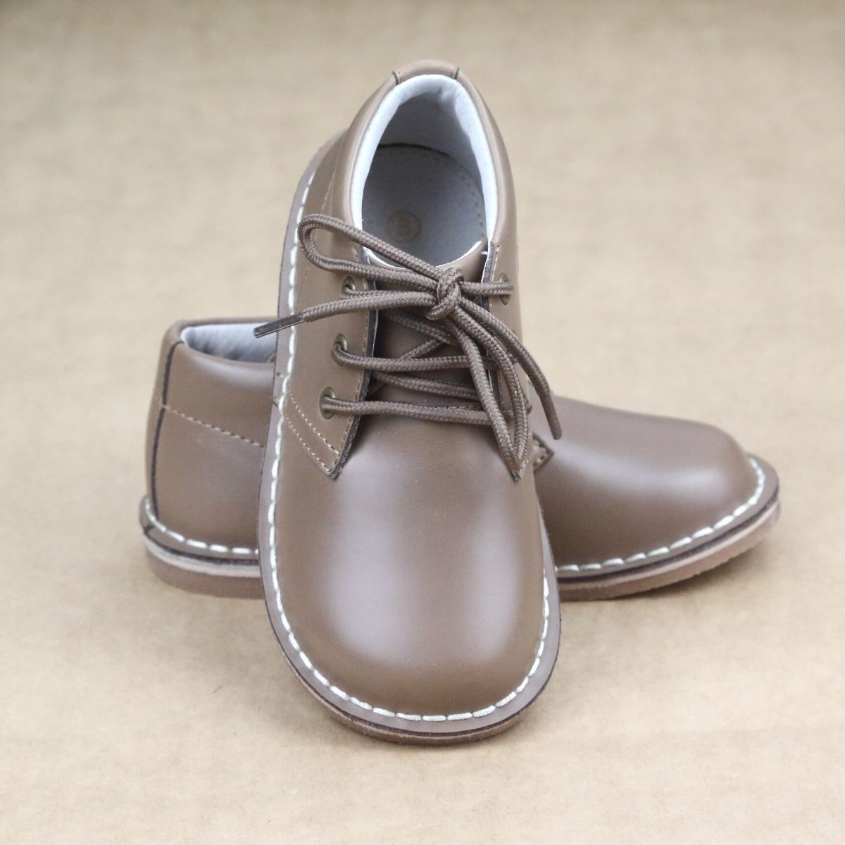 Logan is a lace up mid-top shoe made of sturdy waxed leather and is an indispensable style that works for every season. This leather can handle rough and tumble play, making this shoe perfect for active little ones!